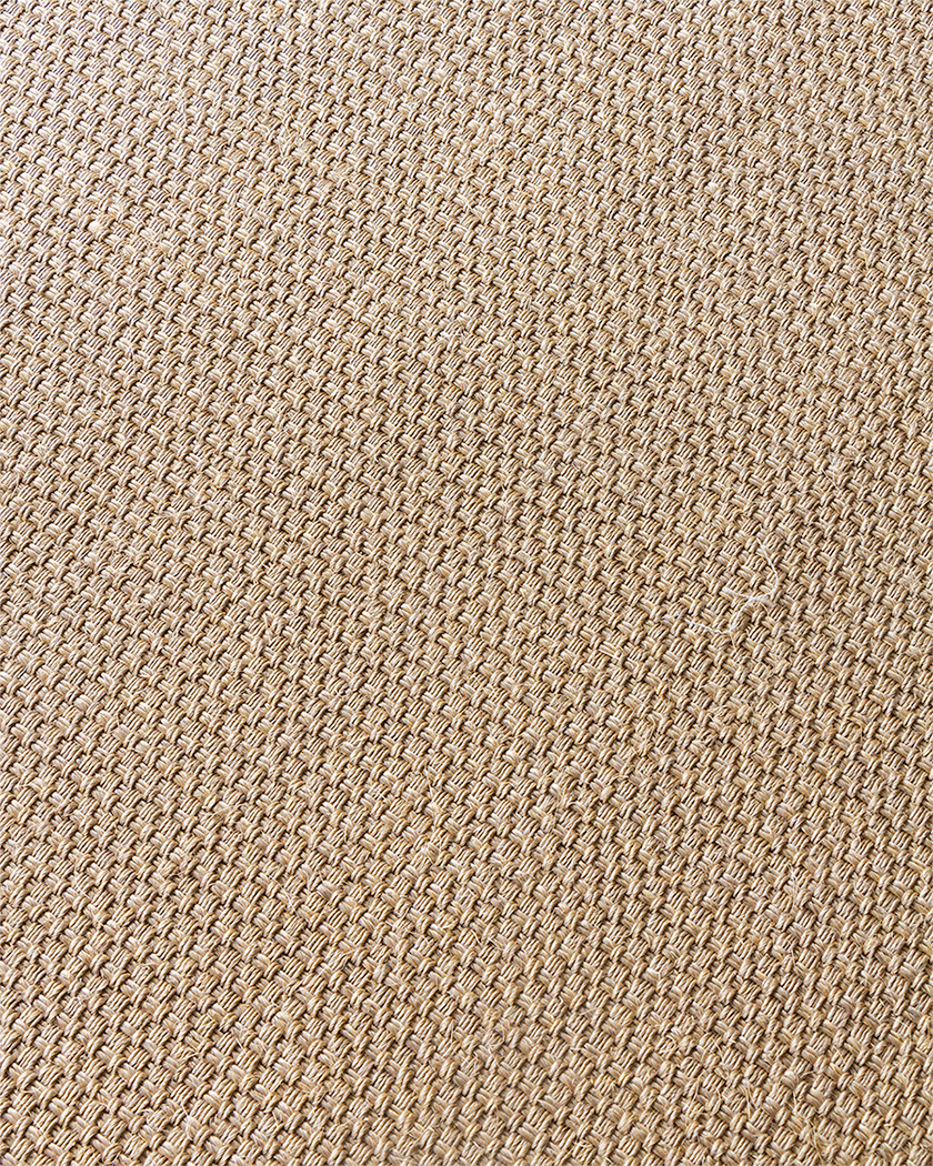 A beige, textured fabric drapes behind a white ribbed ceramic vase with a branch of white blossoms.